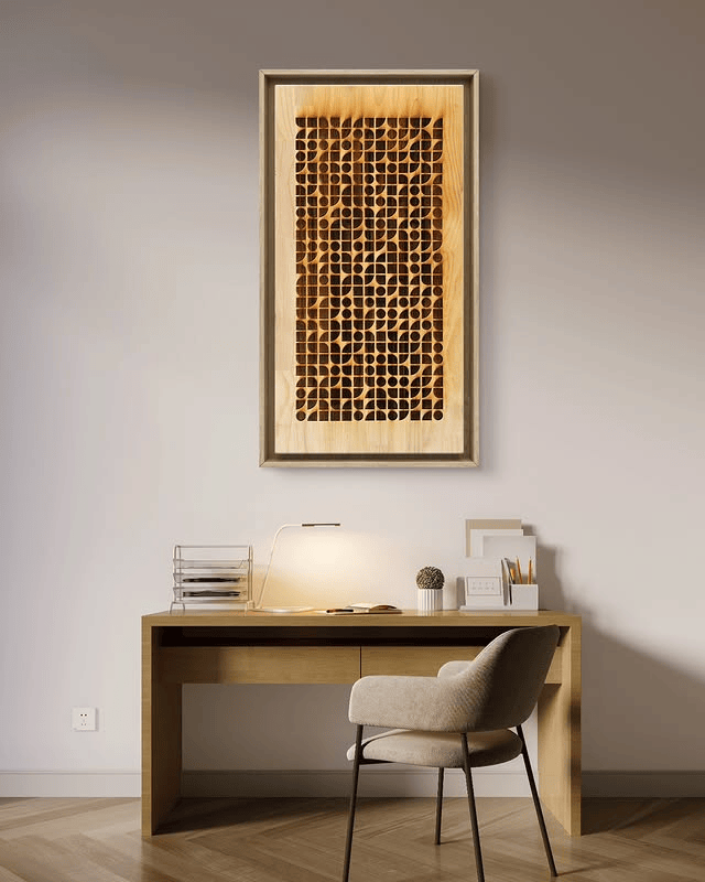 Each layer holds its own weight, yet together they create harmony — distinct yet inseparable. The composition becomes a meditative chamber, a still space held within geometry.