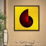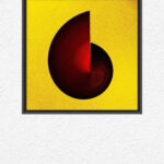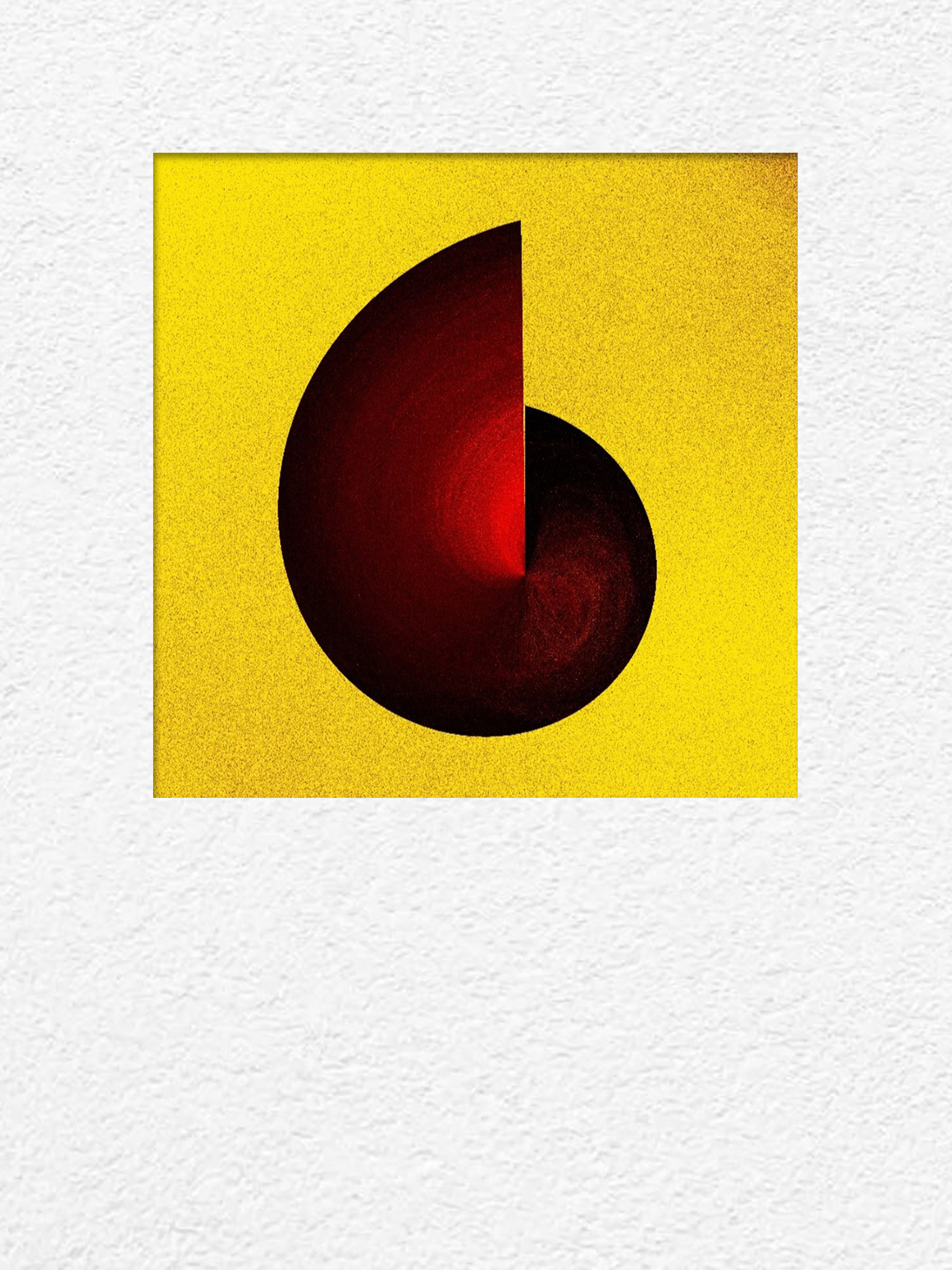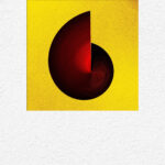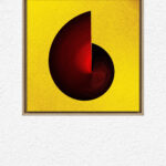A swirling form, sliced cleanly down the middle, glows against golden space — a reminder that even broken forms hold their own radiance.