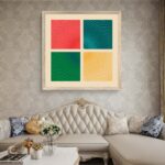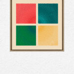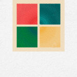 An array of colorful rectangular forms drifts like scattered building stones, capturing the unpredictability of moments.