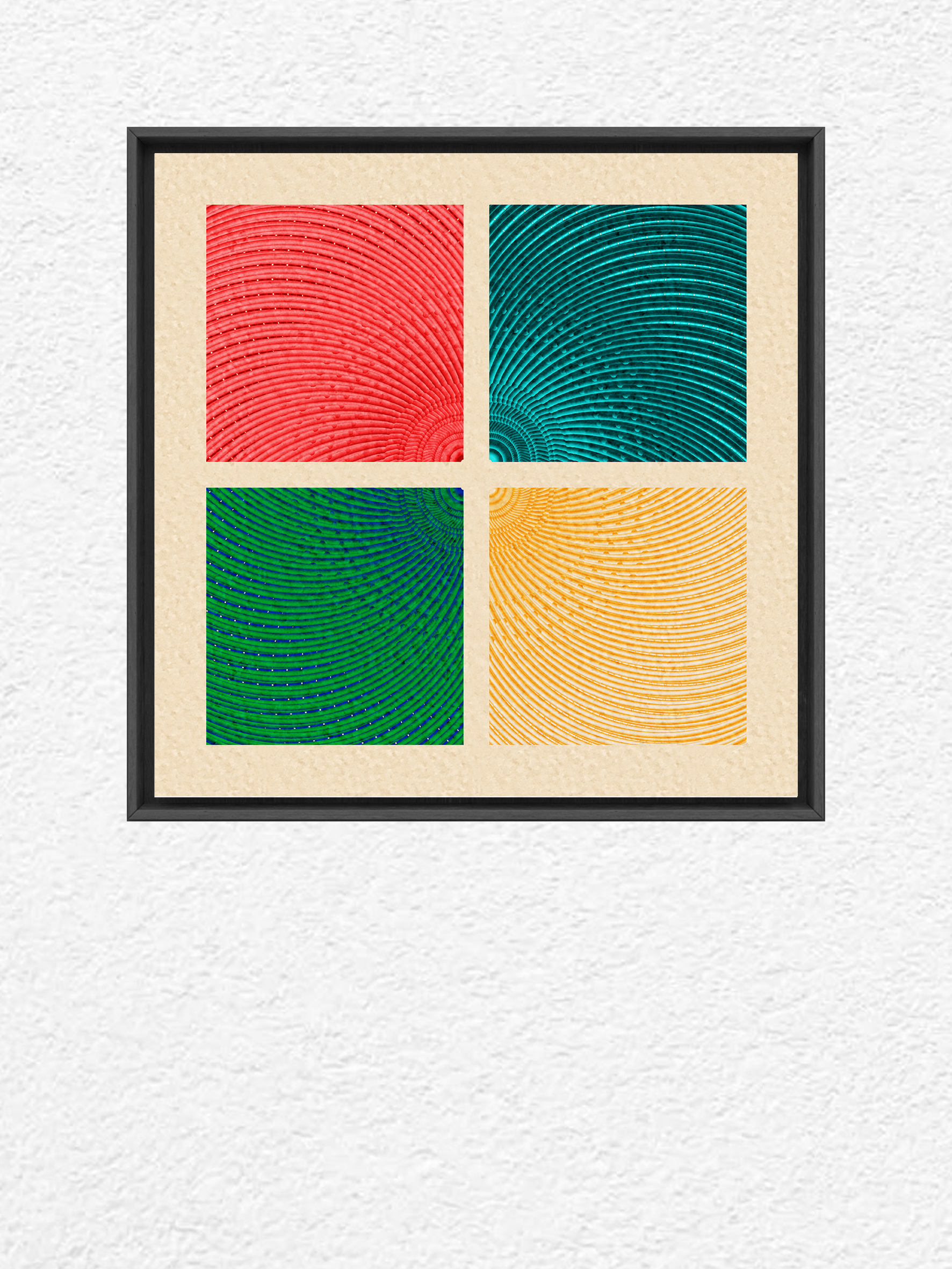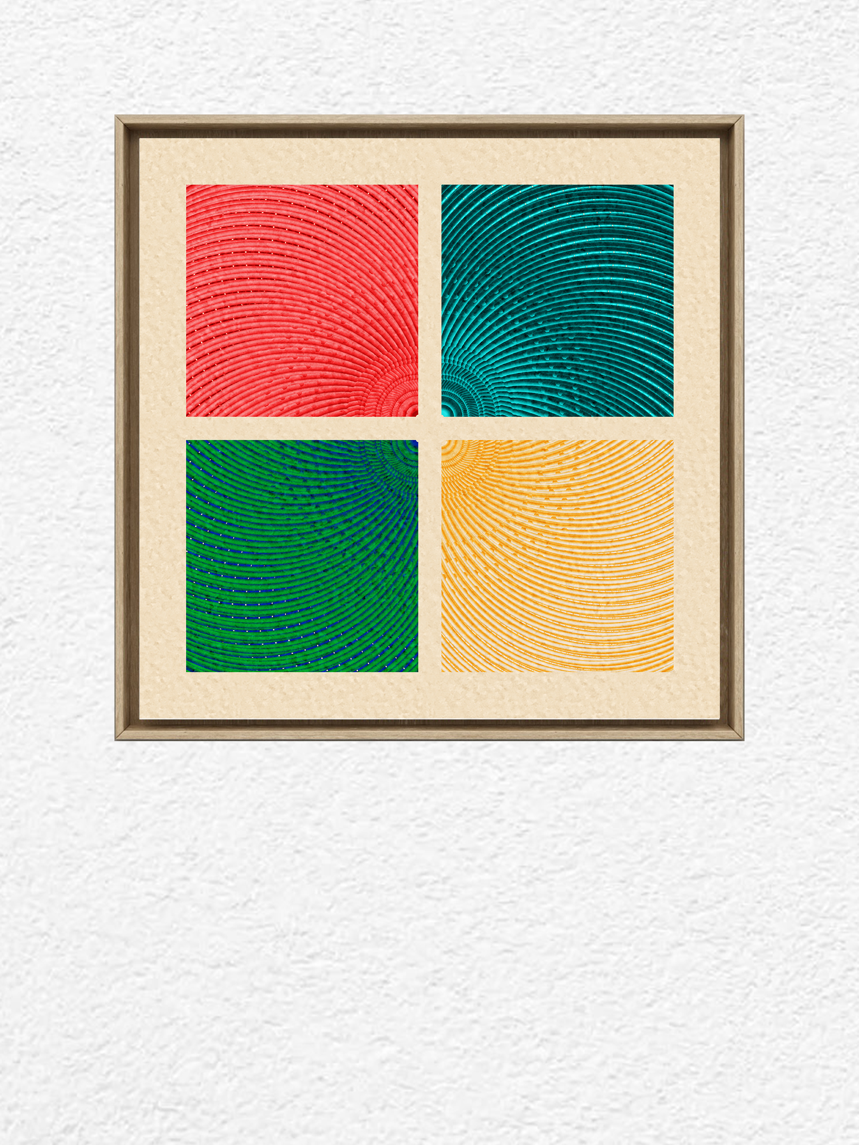 Fields of vibrant ripples—red, teal, green, and yellow—pulse with rhythm.